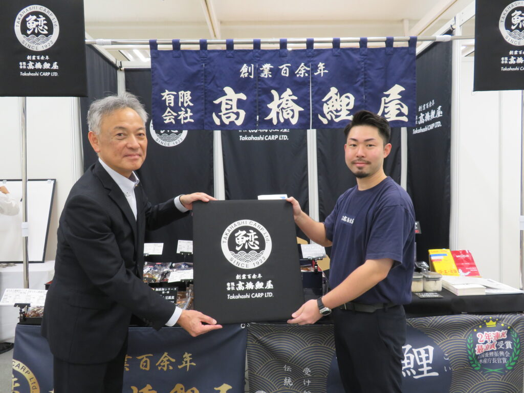 当日は、当協会職員も会場にて出展企業様の展示ブースでお手伝いさせていただき、浅岡刺繍さまより制作いただいた企業ロゴボードも各企業様のブースに掲示いただき、販路拡大や情報発信の支援をさせていただきました。